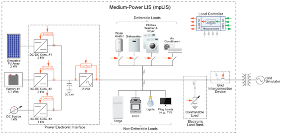 The project focused on developing Local Inverter Systems (LIS) that integrate photovoltaics, batteries, and flexible loads at multiple power scales (low, medium, and high) and can autonomously respond to grid contingencies or follow real-time power schedules, Figure 4. These LIS units were validated across several layers of control and coordination: